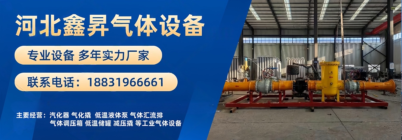 河北鑫昇氣體設備有限公司是一家國內專業從事各種氣體設備研發、制造,銷售與服務為一體的企業。主要產品有氣化撬、氣化站、氣體匯流排、低溫液體泵、CNG瓶組、CNG調壓箱、CNG減壓撬、天然氣調壓柜、空溫式氣化器、水浴式汽化器等,業務覆蓋河北、河南、湖北、陜西、黑龍江、新疆、內蒙等地。